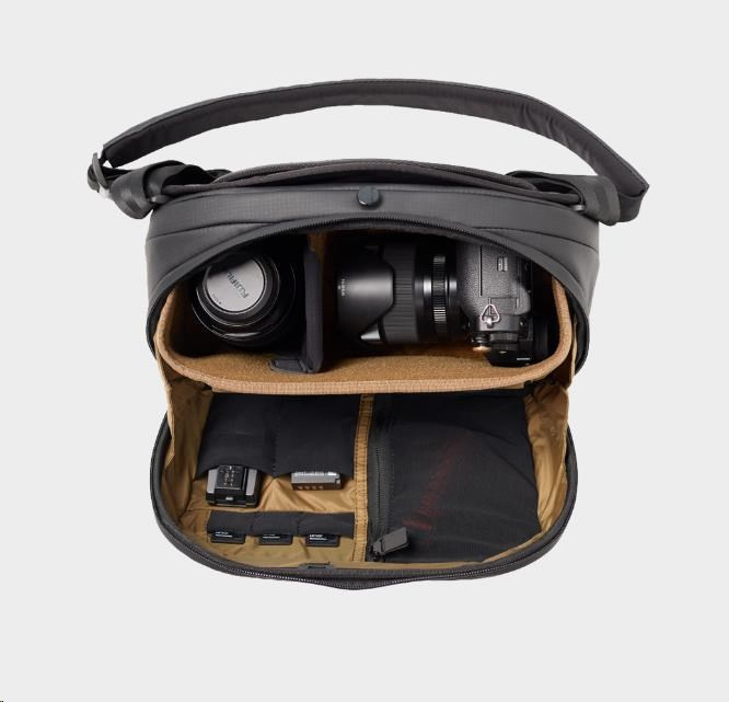 Vďaka rovnakým pevným a vodoodpudivým materiálom ako naše brašna McKinnon 25L, má Sling 8L dostatok priestoru na pohodlné uloženie bezzrkadlovky alebo malej DSLR s výkonom. Otvor je vystužený pevnou, drôtovou konštrukciou pre rýchly prístup a dokonalú viditeľnosť. Zaujme rýchloupínací systém, vďaka ktorému bude prístup k vášmu vybaveniu hračka. Na vnútornej strane dvierok je elastická sieťovaná kapsa na zips a menšie kapsy, určené na pamäťové karty a batérie do fotoaparátu.