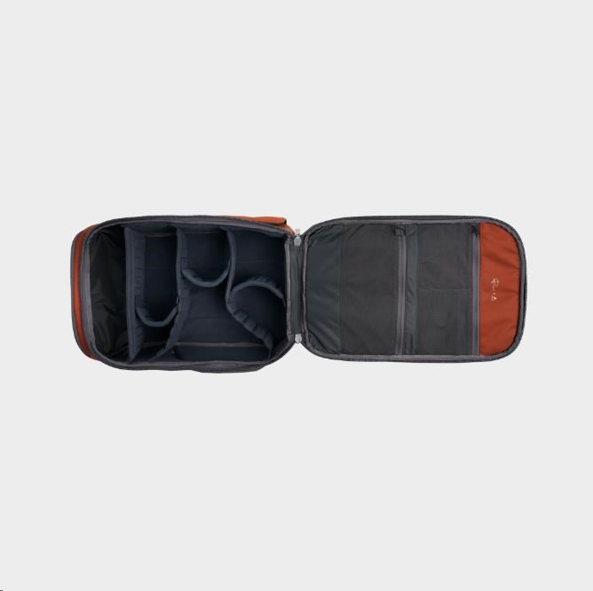 Vďaka funkciám, ako sú vnútorné kapsy, externý slot na fľašu s vodou a integrovaná brašna na prenášanie statívu, je organizácia bezproblémová a intuitívna. Prispôsobiteľný systém vnútorných priečok umožňuje fotografom prispôsobiť výbavu každodenným potrebám.