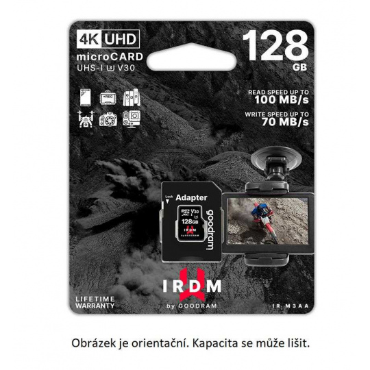 Karta IRDM s rýchlostnou triedou UHS-I 3 (U3) a triedou rýchlosti videa 60 (V60) vám umožní zachytiť dokonalý okamih v širokej škále aplikácií, bez ohľadu na to, či ide o akčnú kameru, dron, prenosnú hernú konzolu, kameru alebo iné špičkové zariadenie.