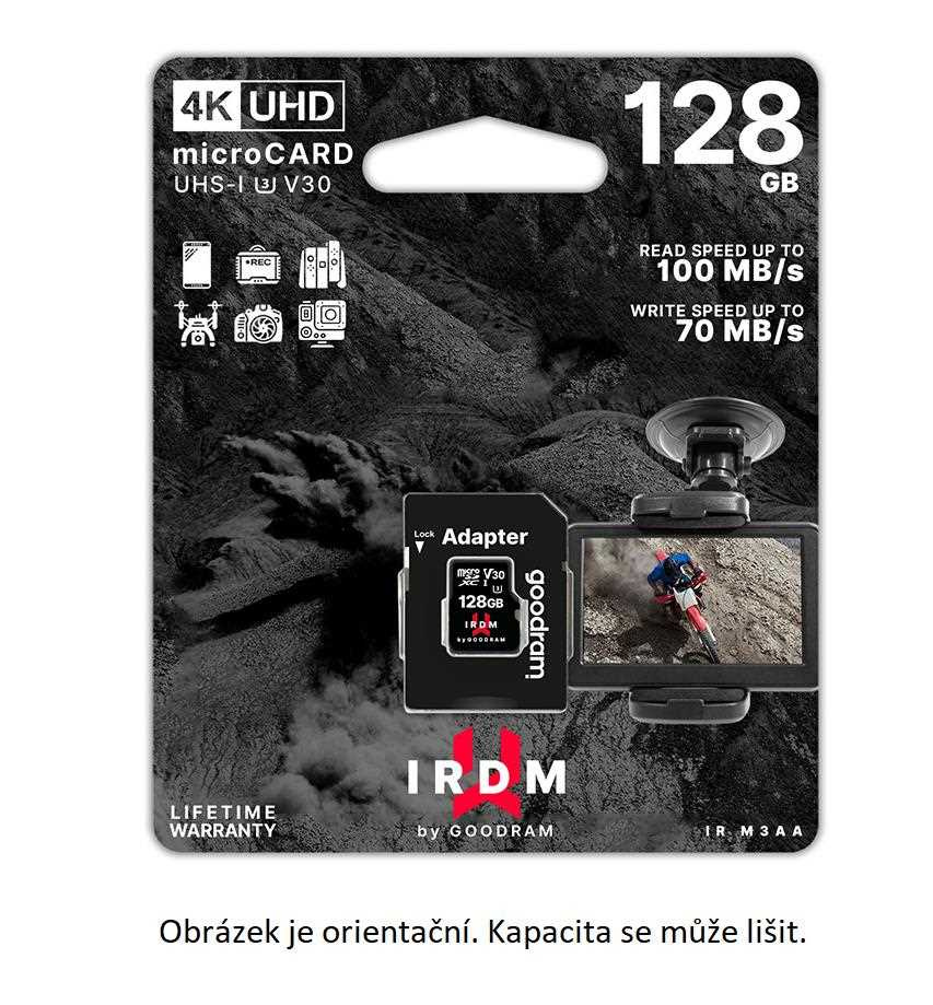 MicroSD karta IRDM UHS-I U3 prináša vysoký výkon a spoľahlivosť pre každého, kto chce natáčať 4K a spomalené videá alebo robiť vysoko kvalitné snímky JPEG/RAW v režimoch rýchle série.