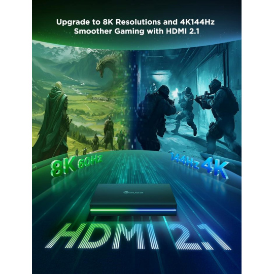Govee AI Sync Box Kit 2 je vybavený HDMI 2.1, čo umožňuje podporu pokročilých funkcií, ako sú Dolby Vision, ARR a ALLM. Vďaka tejto technológii môžete očakávať špičkovú kvalitu obrazu s bohatými farbami a vyššou dynamikou, ideálnu pre moderné domáce kiná a herné sestavy. HDMI 2.1 zabezpečuje optimálnu kompatibilitu s najnovšími štandardmi, čo znamená plynulé prepínanie režimov a minimálne oneskorenie pre dokonale synchronizovaný vizuálny zážitok.