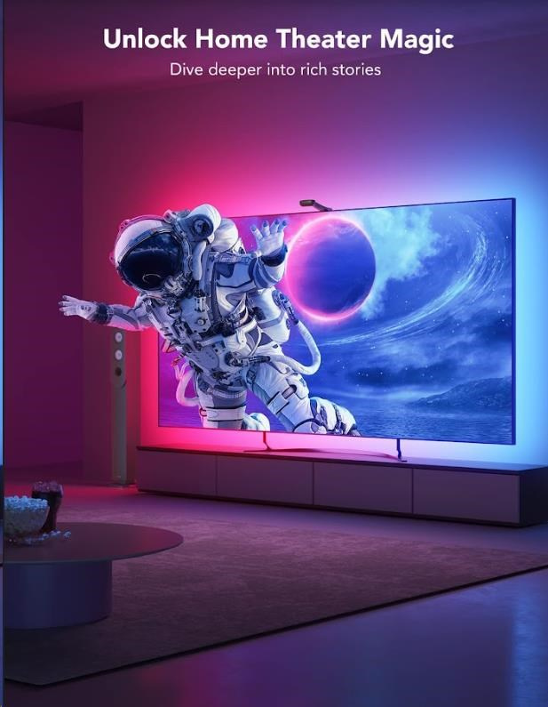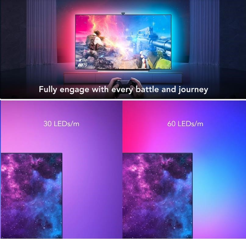 LED pásky sa inštalujú na zadnú stranu TV o veľkosti 55-65 palcov. Je možné ich rozdeliť na viac farebných častí a kombinovať ich farebné prevedenia. Objavte vysokú úroveň zážitku pri sledovaní filmov alebo hraní hier s dynamickými farbami vyžarujúcimi zo všetkých kútov vašej obrazovky (nie je optimalizované pre zakrivené televízory). Vo výbave sa nachádzajú 4 prepojené pásy, ktoré sa inštalujú na zadnú stranu TV alebo monitora.