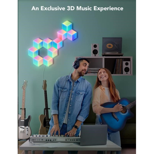 Tí, ktorí majú radi viac farieb, si zamilujú funkciu segmentového ovládania farieb, ktorú umožňuje technológia RGBIC. Prispôsobte si farbu každej sekcie 3D panelu podľa seba a vytvorte tak jedinečné osvetlenie, ktoré bude presne podľa vašich predstáv, vkusu a nálady. Každý panel má 3 časti na zobrazenie farby a efektov, ktoré môžu vytvoriť plastický 3D obraz.