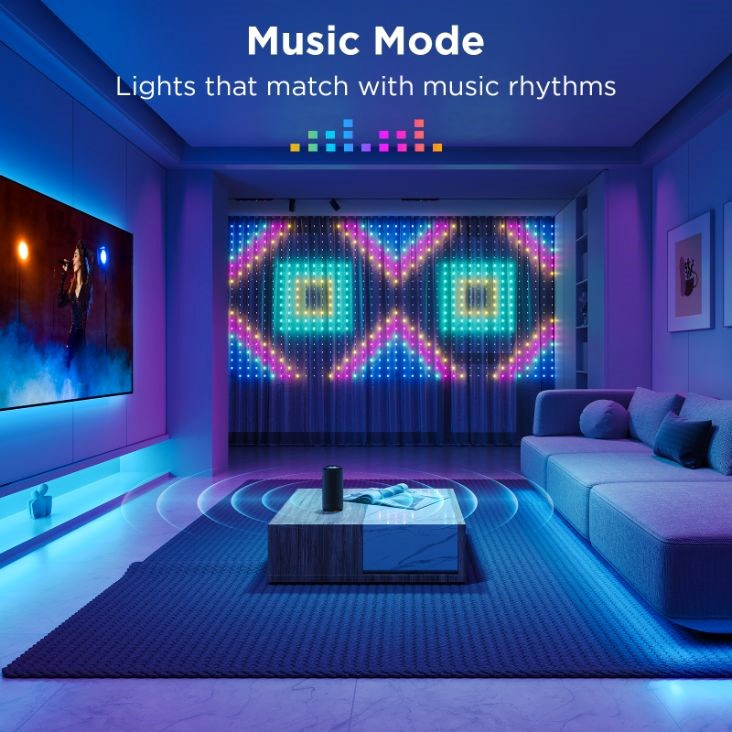 Svetelná opona Govee WIFI & Bluetooth vytvorí dokonalú svetelnú šou. Vďaka technológii RGBIC dokáže záves zostaviť obraz z 520 nezávisle fungujúcich LED diód. Popustite uzdu svojej fantázii a oživte svoje nápady na LED obrazovke v 16 miliónoch farieb. So svetelným závesom budete dokonale pripravení na každú príležitosť, ročné obdobie alebo dovolenku. Viac ako 84 prednastavených scén, 3 možnosti inštalácie a niekoľko automatických a manuálnych režimov dodajú vášmu priestoru jedinečný vzhľad. Príkazy môžete zadávať aj hlasom prostredníctvom Siri, Amazon Alexa alebo Google Assistant, a to prostredníctvom aplikácie Govee Home v smartfóne alebo tablete. Aby toho nebolo málo, môžete pripojiť až tri závesy a vytvoriť tak priestor s rozmermi 4,5 x 2 metre. To je slušná plocha na ľahké graffiti.