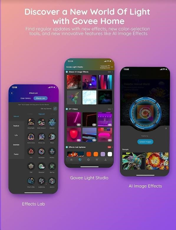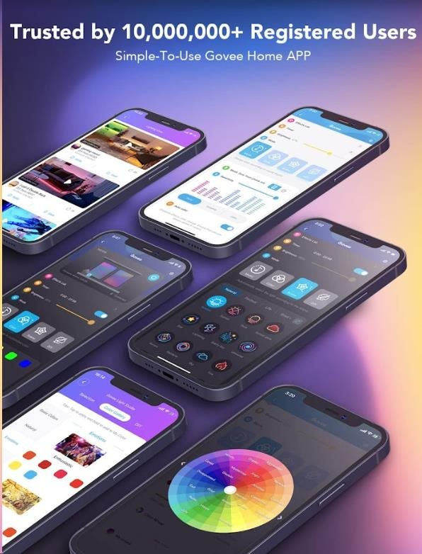 Spravujte nastavenia farieb a intenzity svetla jednoducho pomocou aplikácie Govee Home. Aplikácia je zadarmo na stiahnutie v Google Play a AppStore. Navyše získate prístup k funkcii časovača, DIY farbám, režimu videa, synchronizácii hudby a režimom scény. Taktiež si môžete pomocou časovača nastaviť automatické vypínanie a zapínanie, napríklad podľa doby zaspávania a vstávania. Ovládanie hlasom je možné cez Siri, Amazon Alexa a Google Assistant.
