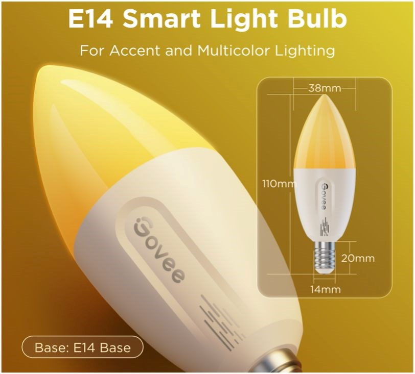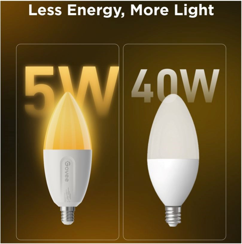 Inteligentné žiarovky Govee B600C E14 sú tu pre dokonalé moderné osvetlenie vášho domova. Majú svietivosť 400 lúmenov pri príkone 4,8 W. Žiarovky využívajú technológiu RGBWW, čo znamená 16 miliónov farieb a rôzne teploty bielej. Žiarovku preto môžete použiť ako dekoratívne osvetlenie, ale aj ako hlavný zdroj bieleho svetla s teplotným rozsahom 2700-6500 K s indexom podania farieb 80 Ra a možnosťou stmievania od 1 do 100 %. To stačí na pokrytie celého dňa a všetkých druhov činností, ako je práca, relaxácia alebo zaspávanie a prebúdzanie. Žiarovky sa vďaka úsporným vlastnostiam neprehrievajú, a tak vydržia svietiť dlhé roky. Možno ich ovládať pomocou aplikácie Govee Home, Google Home a hlasom pomocou aplikácií Google Assistant, Alexa a Siri. Okrem toho sú kompatibilné so systémom Matter. Viacero žiaroviek je možné zoskupiť do skupín pre pohodlnejšie ovládanie. Aplikácia ponúkne množstvo prednastavených scén, ktoré sa hodia na každú príležitosť, a vďaka mikrofónu dokážu žiarovky dokonca vizualizovať hudbu. Žiarovky sa pripájajú cez Bluetooth na rýchle miestne ovládanie alebo cez Wi-Fi na diaľkové ovládanie. Vďaka tomu môžete žiarovky ľubovoľne ovládať a časovať, keď nie ste doma, a zabrániť tak tomu, aby sa váš domov stal terčom zlodejov.