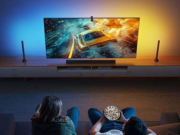 Súprava osvetlenia sa spolieha na fotoaparát, ktorý presne reprodukuje farby na obrazovke. To je teraz rozšírené o korekciu skreslenia, takže podsvietenie presne kopíruje farby na obrazovke a vytvára tak pohlcujúci vizuálny zážitok. Kamera je umiestnená nad televízorom, aby bola kompatibilná so soundbarmi a prispôsobila sa aj modelom s ultratenkou obrazovkou.