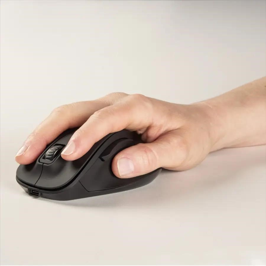 - 6- tlačidlová bezdrôtová nabíjacia myš s presným snímačom a tichými tlačidlami, pre nerušenú prácu s myšou - snímač s technológiou blue wave umožňuje použitie na takmer akomkoľvek povrchu - ergonomický tvar vhodný pre pravákov - bočné tlačidlá pre ľahké ovládanie funkcie vpred/vzad v prehliadači - DPI tlačidlo pre zmenu rozlíšenia (max. 1600 DPI) - integrovaný Li-Ion akumulátor, nabíjanie pomocou USB-C kábla - inteligentné riadenie spotreby energie aktivuje Standby režim, ak myš nepoužívate - samostatný vypínač pre úsporu energie - výdrž myšky cca. 75 dní pri dennom používaní - 2,4 GHz technológia pre spoľahlivý a nerušený prenos signálu - Smart link technológia – jednoduchá a rýchle pripojenie - nano USB prijímač môže byť trvalo zasunutý v PC - polymerom potiahnuté kĺzne plochy pre plynulý pohyb myši - pogumované rolovacie koliesko Systémové požiadavky: - operačný systém: Windows 11/10/8/7/Vista/XP, Mac OS 10.10 alebo vyššie Technické parametre: - pripojenie: USB A vidlica (2,4 GHz RF) - rozlíšenie: 800/1200/1600 DPI - počet tlačidiel: 6 - rolovacie koliesko - napájanie: Li-Ion akumulátor - rozmery: 8,5 x 12 x 4,2 cm - farba: čierna Obsah balenia: - optická bezdrôtová myš MW 500 Recharge - USB príjímač - USB nabíjací kábel USB-A – USB-C - návod na použitie.