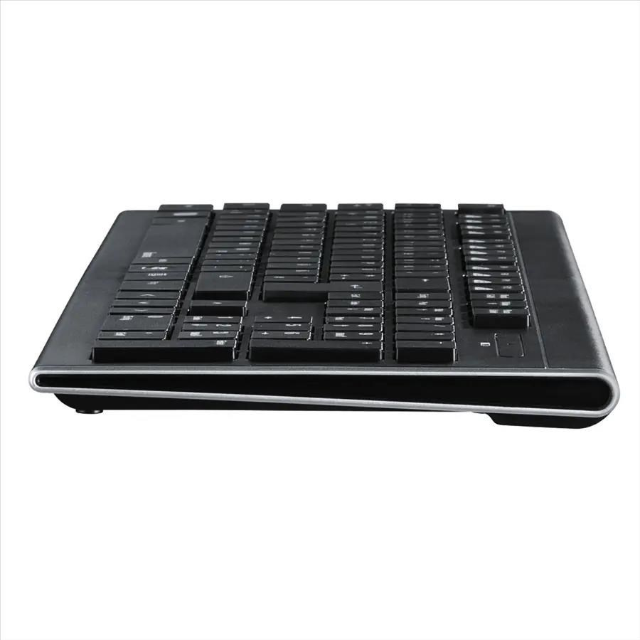 - štýlová bezdrôtová klávesnica a myš pre každodenné použitie - spoľahlivá 2,4 GHz rádiová technológia - smart-link technológia pre rýchly štart - USB pripojenie (prijímač) - nie je nutný žiadny softvér – pripojte a pracujte Myš: - optický senzor pre presné a plynulé pohyby myši - nastaviteľné DPI (1600 DPI) Klávesnica: - plnoformátové tlačidlové pole s plochými klávesmi - 12 mediálnych kláves (F1-F12) - CZ/SK layout Systémové požiadavky: - operačný systém: Windows 10/8/7/Vista - voľné USB pripojenie Technické parametre: - počet tlačidiel myši: 3 - počet kláves na klávesnici: 105 - dosah: 8 m - farba: čierna Obsah balenia: - bezdrôtová klávesnica - bezdrôtová myš - prijímač - 1 AAA batéria - 1 AA batéria - návod na použitie.