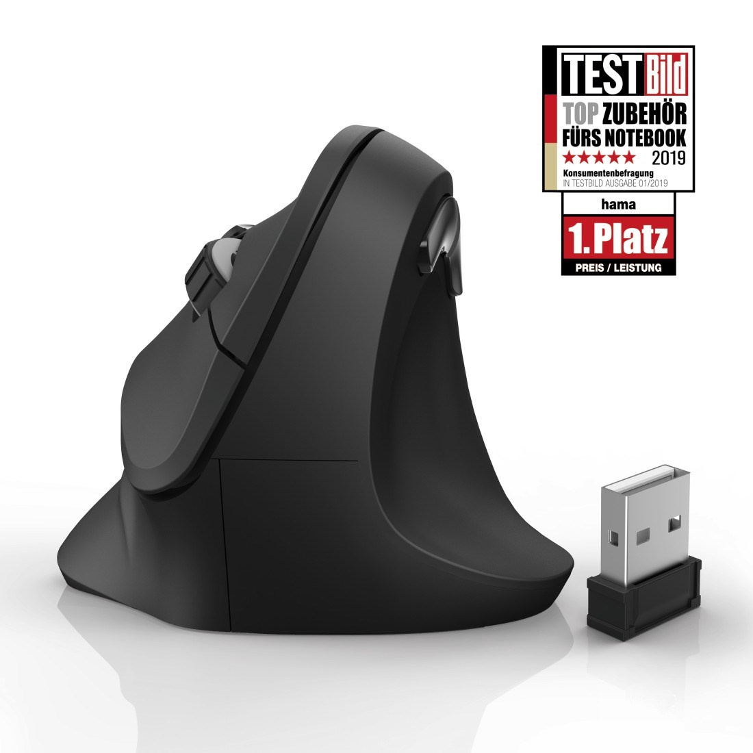 Vertikálna ergonomická bezdrôtová myš Hama EMW-500, 6 tlačidiel, čierna