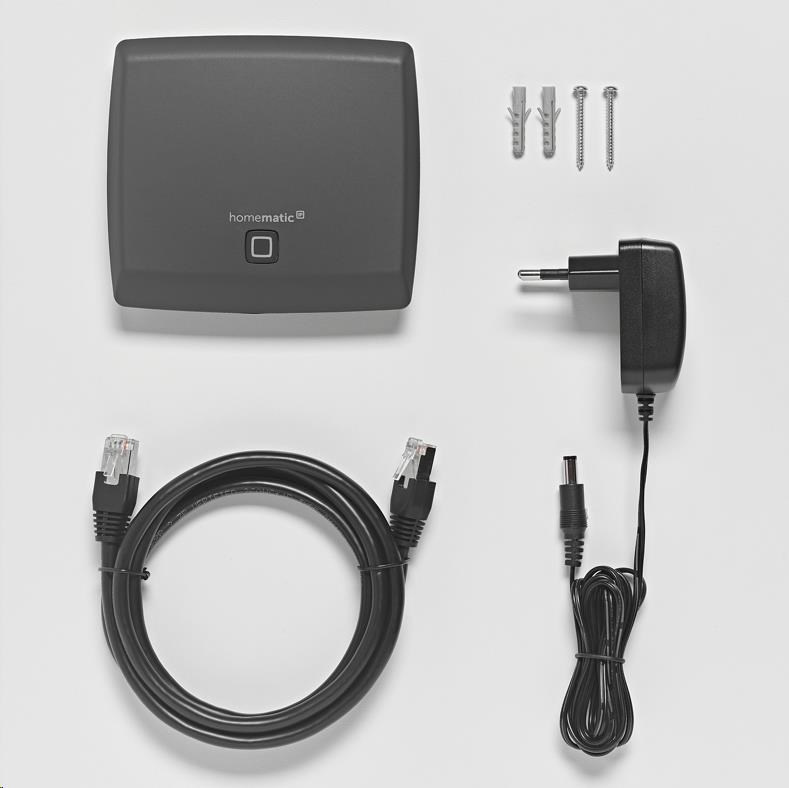 Centrálnu jednotku (HmIP-HAP-A) je pripojená k štandardnému routeru ethernetovým káblom (RJ-45) a slúži ako rozhranie medzi cloudom Homematic IP umiestneným výlučne na serveroch v Nemecku a zariadeniami Homematic IP vo vašej domácnosti.