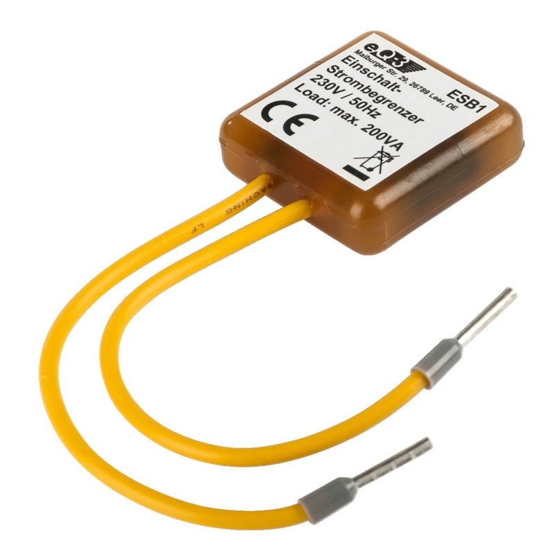 Kompenzátor nábehového prúdu (ESB1) sa zapája do série so záťažou a vďaka svojej kompaktnosti je vhodný na montáž do zapustených alebo povrchových elektroinštalačných krabičiek.