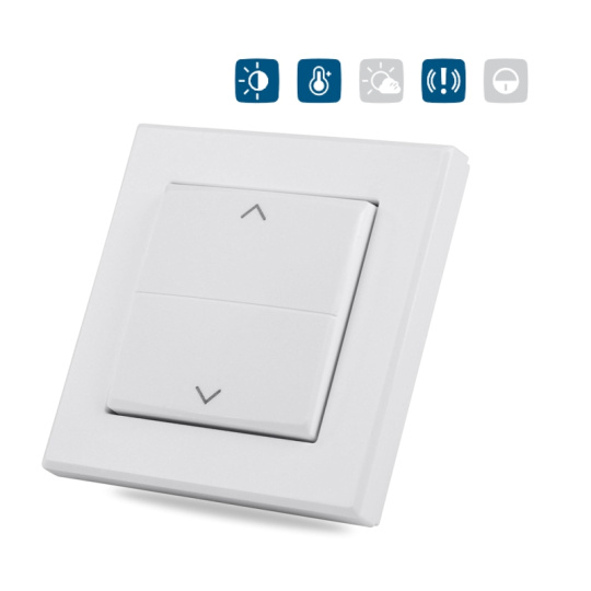 Kryt kolákového vypínača so symbolmi šípok a rámečkom (HmIP-BRA) pre programovateľné bezdrôtové akčné členy (HmIP-BRC2, HmIP-BROLL, HmIP-BBL, HmIP-BSM, HmIP-BDT) o veľkosti 55 mm je súčasťou systému chytrej domácnosti Homematic IP.
