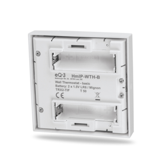 Bezdrôtový Nástenný termostat Basic (HmIP-WTH-B) z rady Homematic IP umožňuje časovo riadenú reguláciu teploty v miestnosti v spojení s termostatickými hlavicami (HmIP-eTRV) z rady Homematic IP alebo Akčnými členmi podlahového vykurovania (HmIP-FAL).