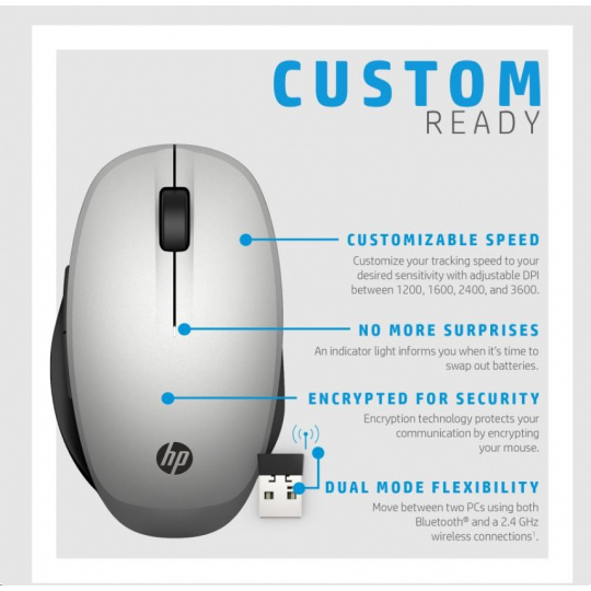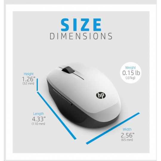 Myš HP Dual Mode Silver Mouse 300 - myš bluetooth, pripojenie k dvom počítačom súčasne