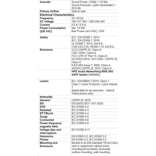 HPE Aruba Networking 6000 Switch Specifications