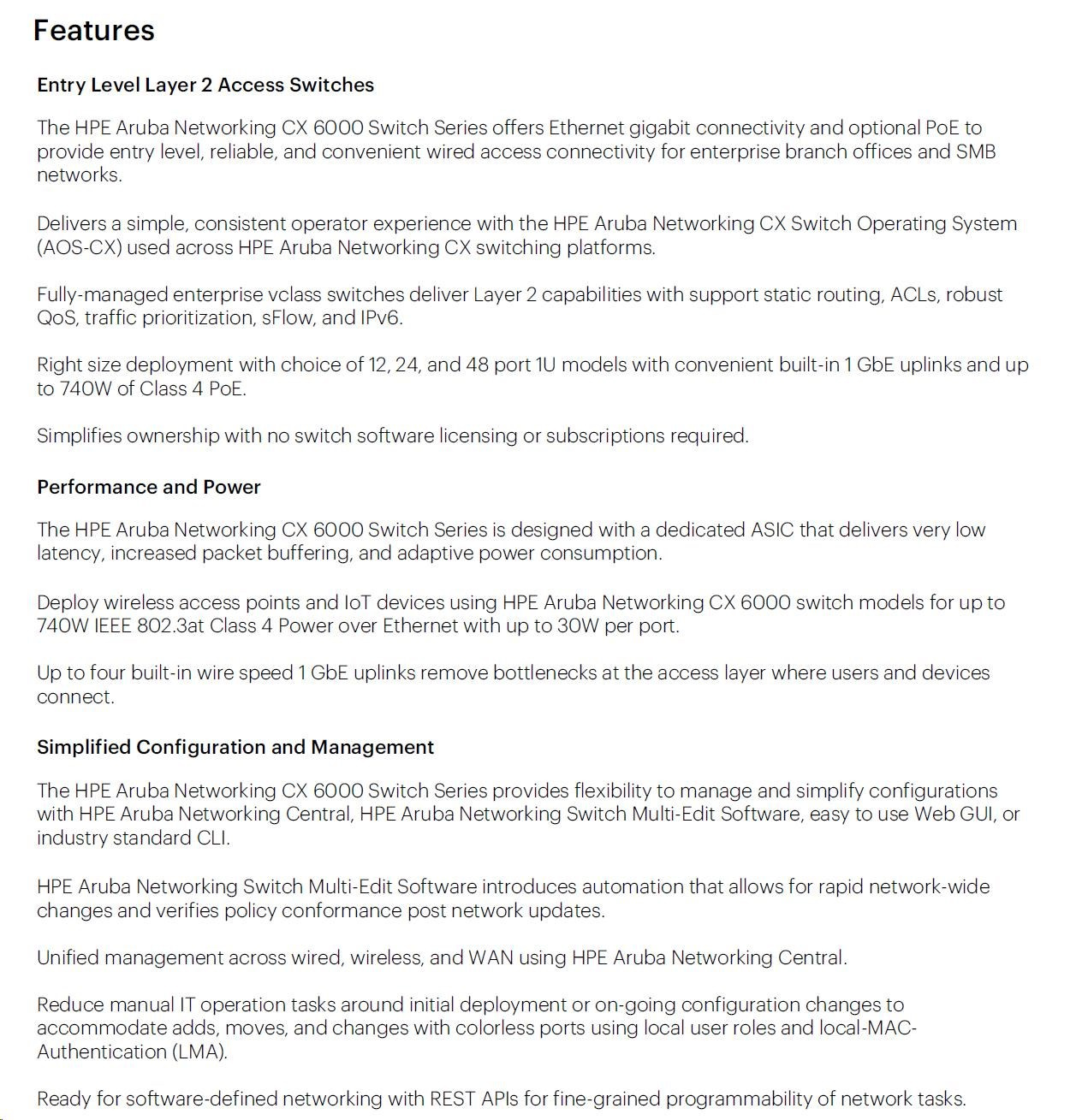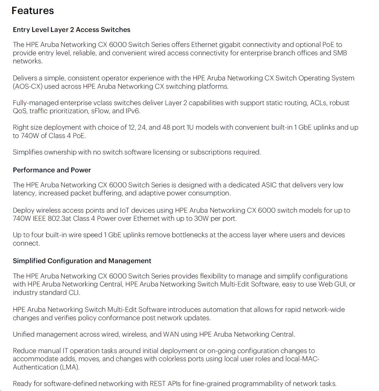 HPE Aruba Networking CX 6000 48G Class4 PoE 4SFP 370W Switch R8N85A RENEW
