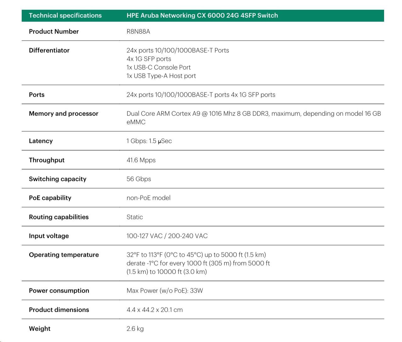 HHPE Aruba Networking CX 6000 8p 10M/100M/1G 2p SFP 1G Switch.