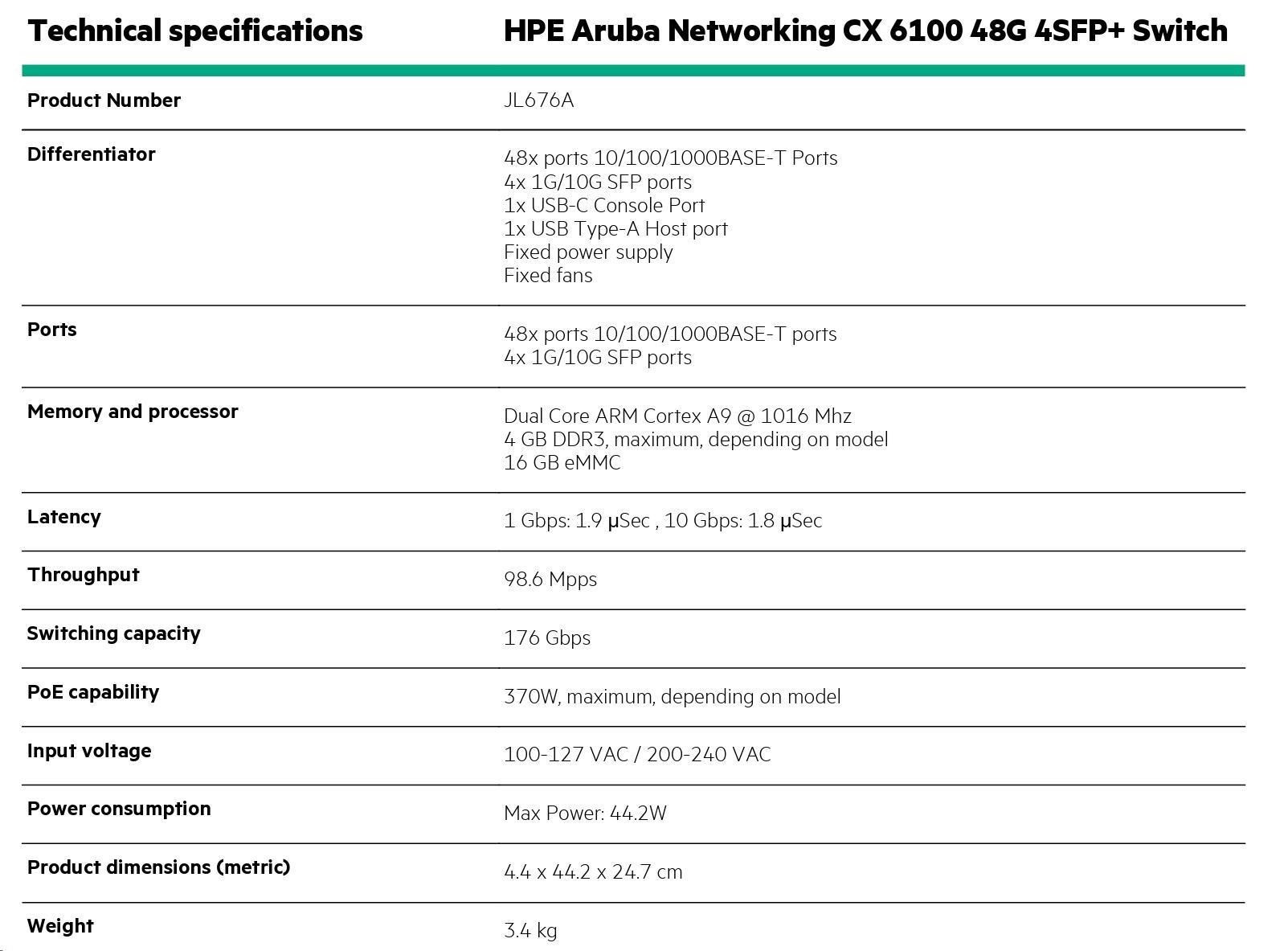 HPE Aruba Networking CX6100 48G 4SFP+ Switch