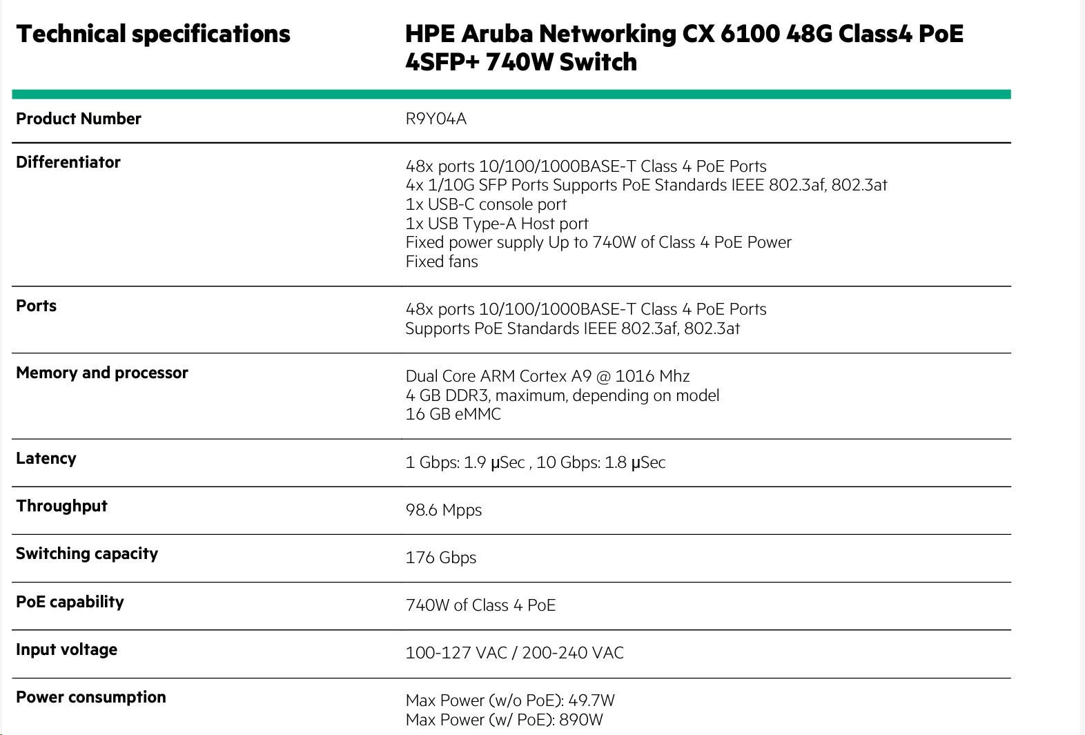 Aruba 6100 48G CL4 4SFP+ 740W Sw (R9Y04A)
