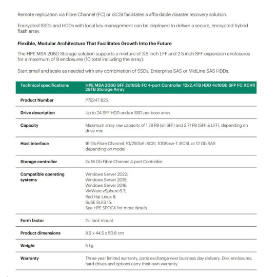 HPE MSA 2060 SFF 2x16Gb FC 4-port Controller 12x2.4TB HDD 4x16Gb SFP FC XCVR 29TB Storage Array.