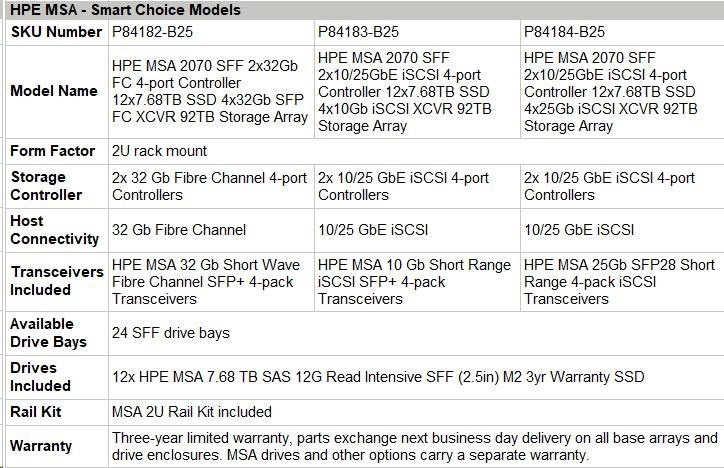 HPE MSA 2070 SFF 2x10/25GbE iSCSI 4-port Controller 12x7.68TB SSD 4x25Gb iSCSI XCVR 92TB Storage Array Smart Choice.
