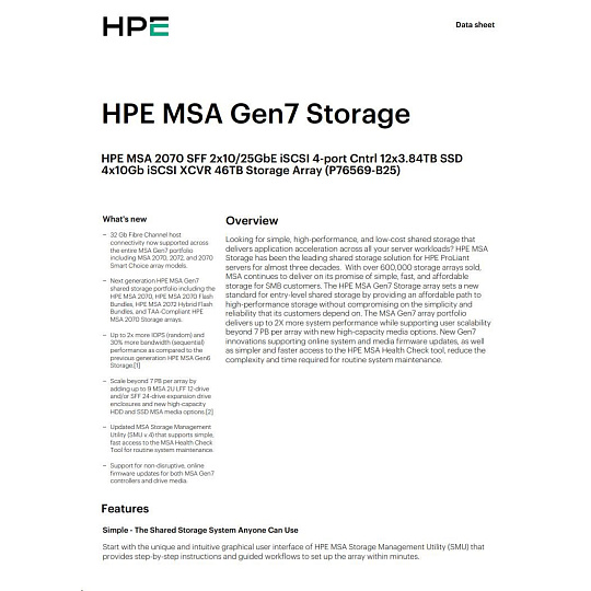 HPE MSA 2070 SFF 2x16Gb FC 4p Array.