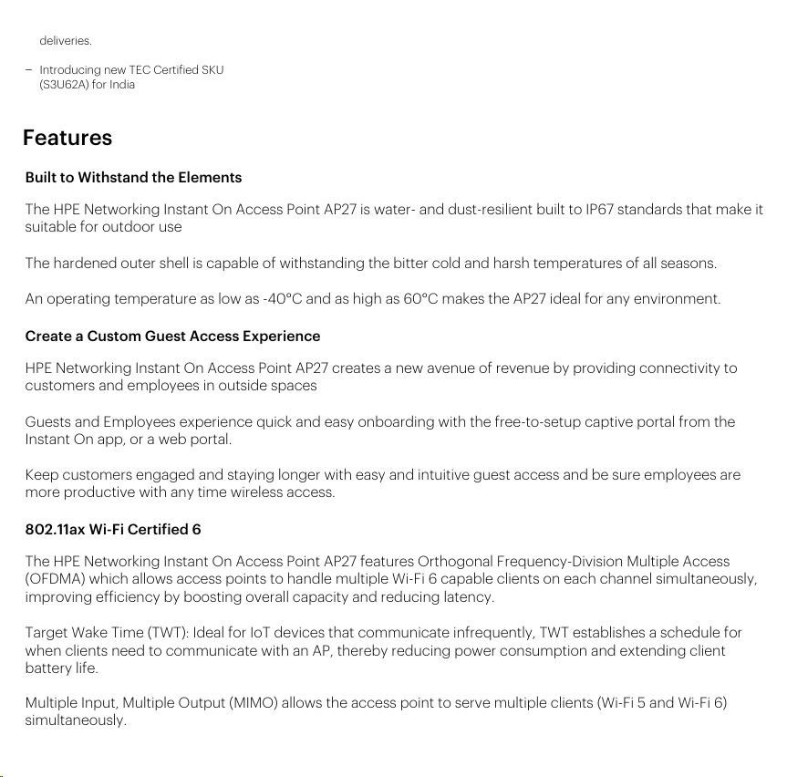 • Wi-Fi CERTIFIED 6™ support for up to 75 user devices.