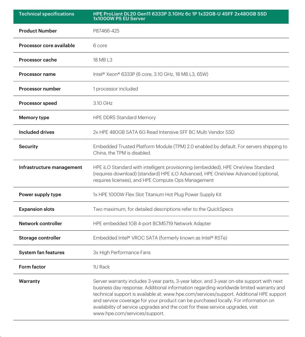 HPE PL DL20 gen11 6333P (3.1G/6C12T) 1x32G 4SFF 2x480GB VROC 1x1000W 4x1G NBD333 Smart Choice.