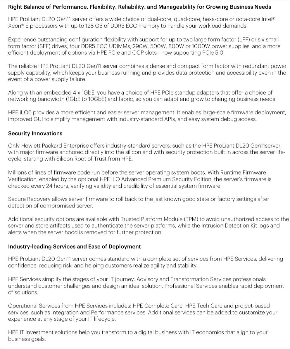 HPE PL DL20g11 6325P (3.5G/4C8T) 1x32G 2x480G SSD VROC 4SFF-HP 4p1Gb 1x1000W Smart Choice.