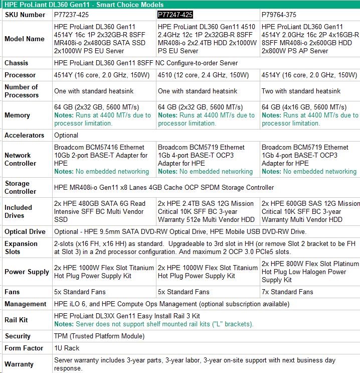HPE ProLiant DL360 Gen11 4510 - Specs