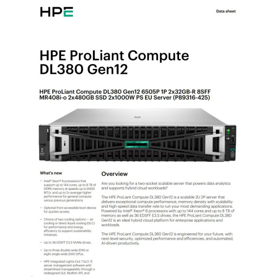 HPE PL DL380g12 6505P (2.2/12C) 2x32G (P69727) 2x8TB MR416i-o 2x1000W 10GbE NBD333 Smart Choice.