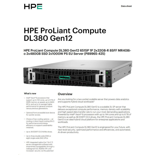HPE PL DL380g12 6515P (2.4/16C) 2x32G (P69727) 2x480G MR408i-o 8SFF 2x1000W 2p10G-T NBD333 Smart Choice