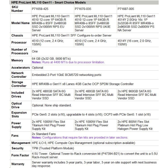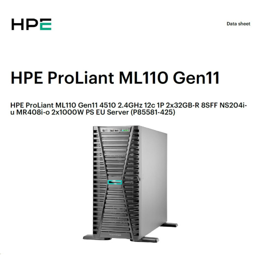 HPE PL ML110g11 4510 (2.4G/12C) NS204(2x480) 2x32G (P64706) MR408i-o 2x1000W 8SFF 2x1G NBD333 Smart Choice