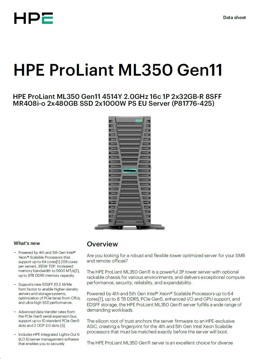 HPE ProLiant ML350 Gen11 - Smart Choice Models