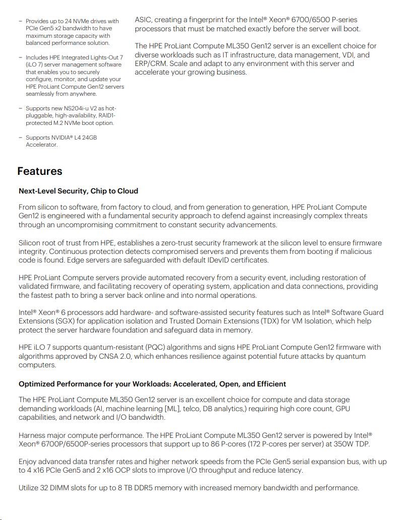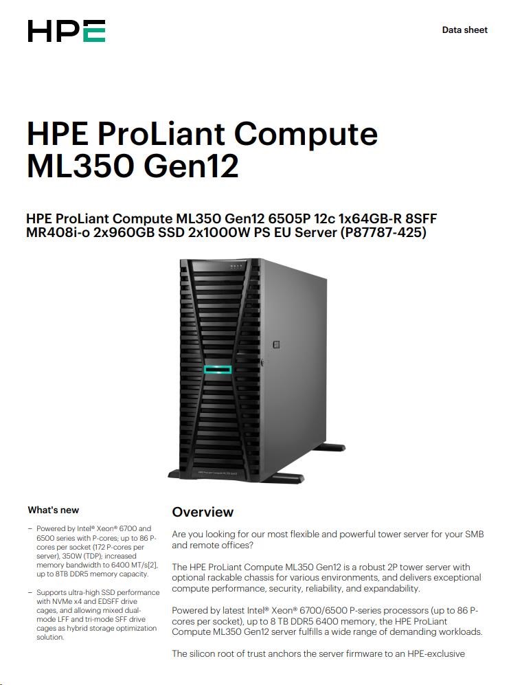 HPE PL ML350g12 6505P (2.2/12C) 1x32G (P69728) 2x4TB 4LFF MR408i-o2x1000W 1GbE NBD333 Smart Choice.