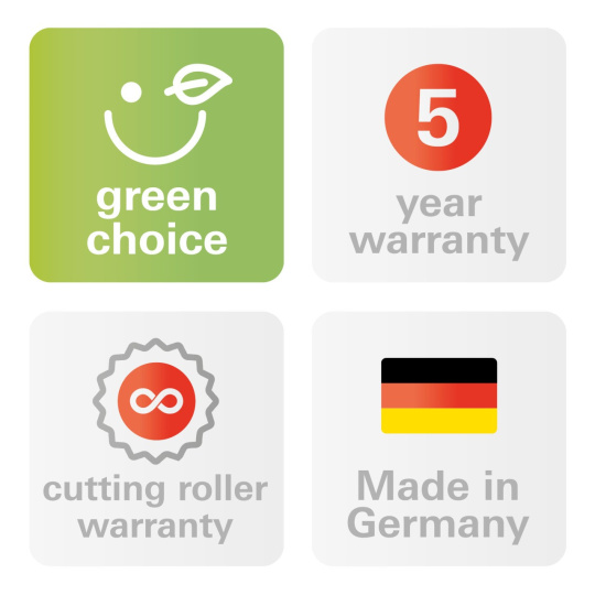 Skartovací stroj je držitelem certifikátu Blue Angel - pro výrobek nejvyšší kvality šetrný k životnímu prostředí.