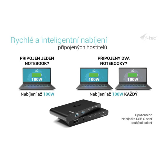 - Dvojité Power Delivery – nabíjanie oboch pripojených zariadení (až 2× 100 W)