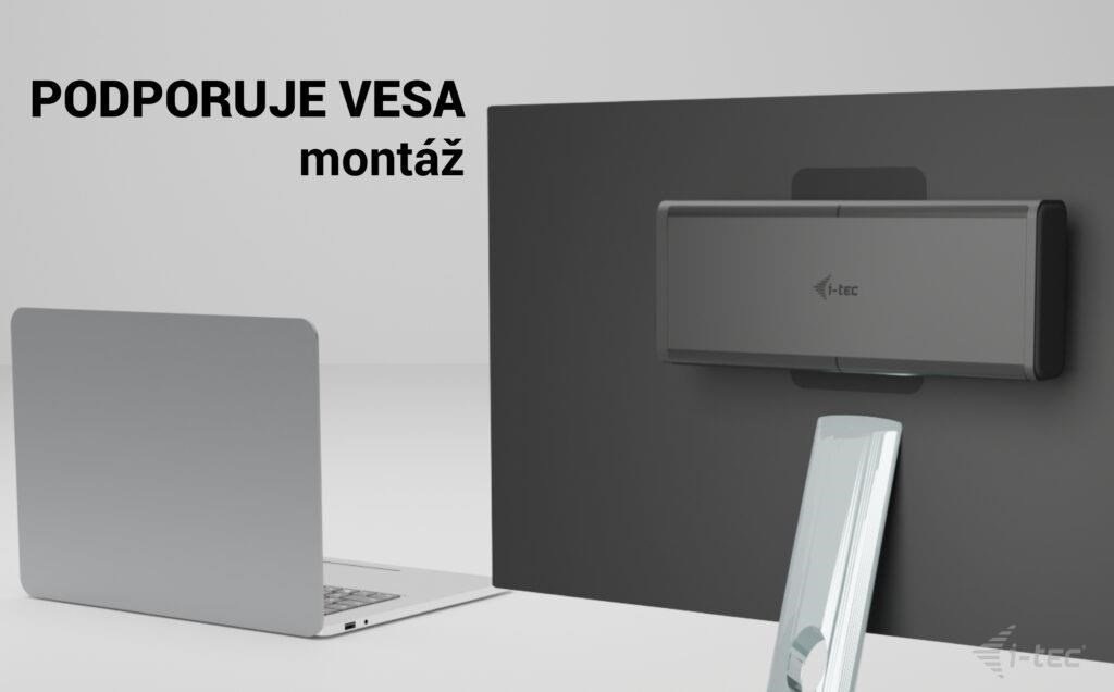 Dokovaciu stanicu je možné nainštalovať za monitor (ak podporuje štandardný držiak VESA), pomocou i-tec VESA mount.