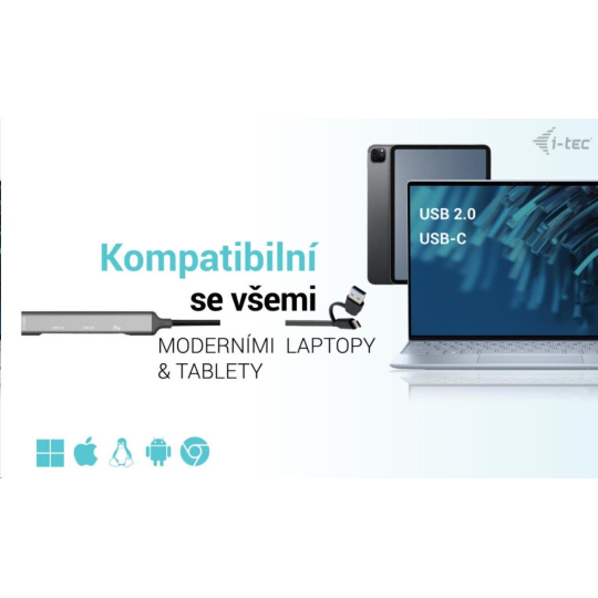 - HUB podporuje všetky bežné súčasné operačné systémy (Windows, macOS, Linux, Android, Chrome OS, iPadOS).