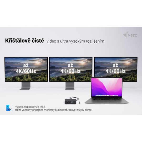 Vysoko výkonná kancelárska dokovacia stanica USB-C s podporou až 3 externých monitorov s rozlíšením 4K. Stanica je kompatibilná s akýmkoľvek notebookom vybaveným portom USB-C, USB4 alebo Thunderbolt 3/4/5. Samozrejmosťou je tiež možnosť nabíjania notebooku či tabletu výkonom až 100 W.