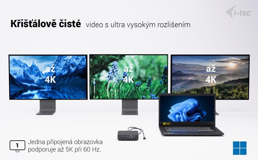 Vysoko výkonná kancelárska dokovacia stanica USB-C s podporou až 3 externých monitorov s rozlíšením 4K. Stanica je kompatibilná s akýmkoľvek notebookom vybaveným portom USB-C, USB4 alebo Thunderbolt 3/4/5. Samozrejmosťou je tiež možnosť nabíjania notebooku či tabletu výkonom až 100 W.