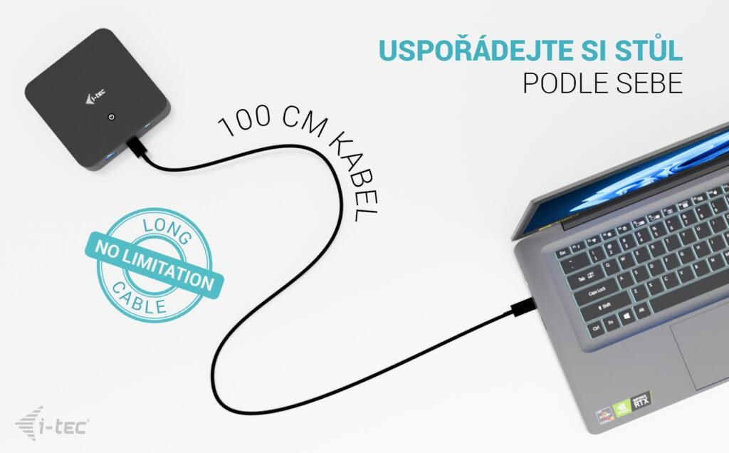 Poznámka: Napájací adaptér nie je súčasťou balenia. Dokovaciu stanicu je možné napájať originálnym adaptérom notebooku alebo je možné zakúpiť voliteľný napájací adaptér (kód i-tec: CHARGER-C100W).