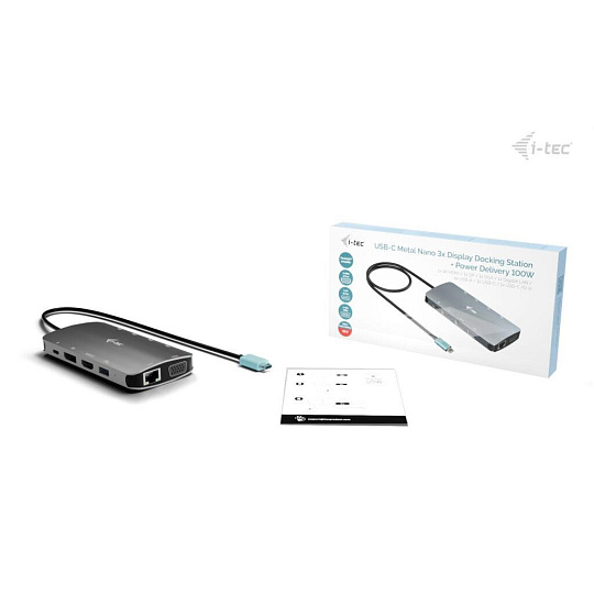 i-tec USB-C Metal Nano 3x Display (DP, HDMI and VGA) Docking Station + Power Delivery 100 W