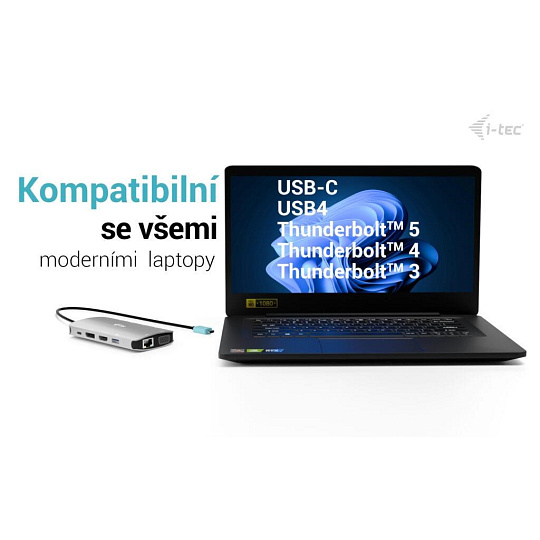 Dokovací stanice je kompatibilní s širokou škálou zařízení včetně notebooků a tabletů s USB-C, USB4 nebo Thunderbolt“ rozhraním.