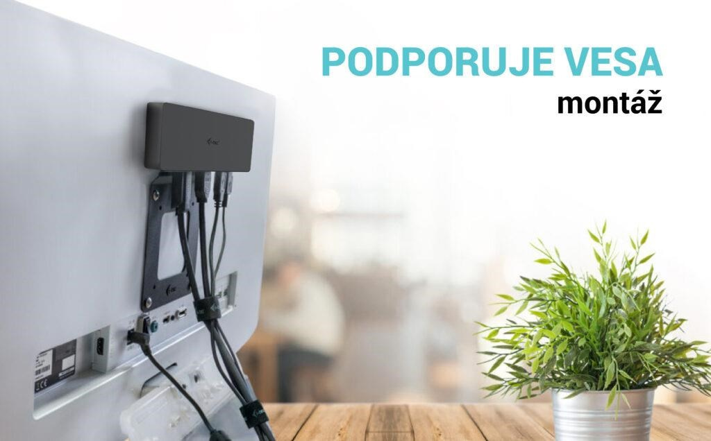 - Dokovacia stanica je kompatibilná pre vertikálnu montáž za monitor s podporou VESA mountu.