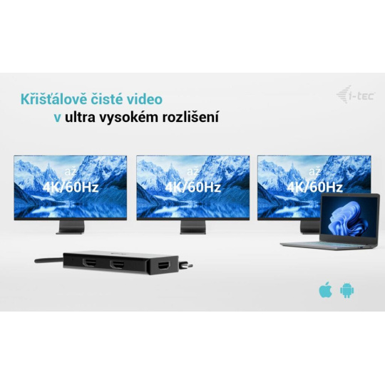 i-tec USB-C Triple 4K HDMI Video Adaptér, Power Delivery 100W
