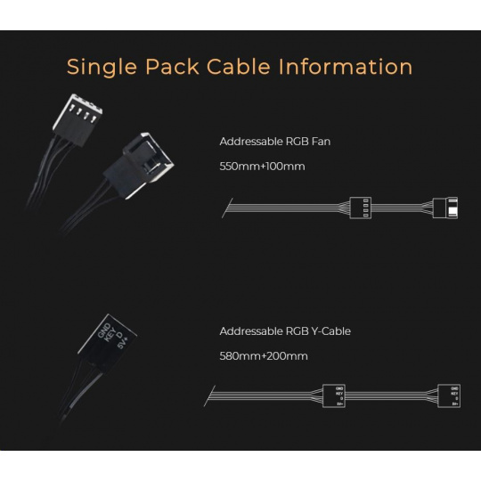 Kruhový adresovateľný svetelný efekt je doplnený čiernymi lopatkami ventilátora, ktoré dodávajú solídny nádych RGB osvetlenia v PC zostavách. Dvojitá konštrukcia poskytuje používateľom možnosť inštalácie na oboch stranách.