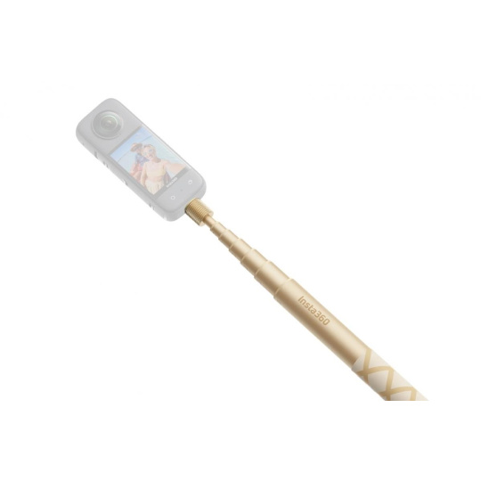 Selfie tyč pre akčné kamery Insta360. Nastaviteľná dĺžka 23,3 cm až 114 cm. Materiál: hliník. Spôsob upevnenia: 1/4" skrutka. Tyč je automaticky odstránená z capturingových záberov.