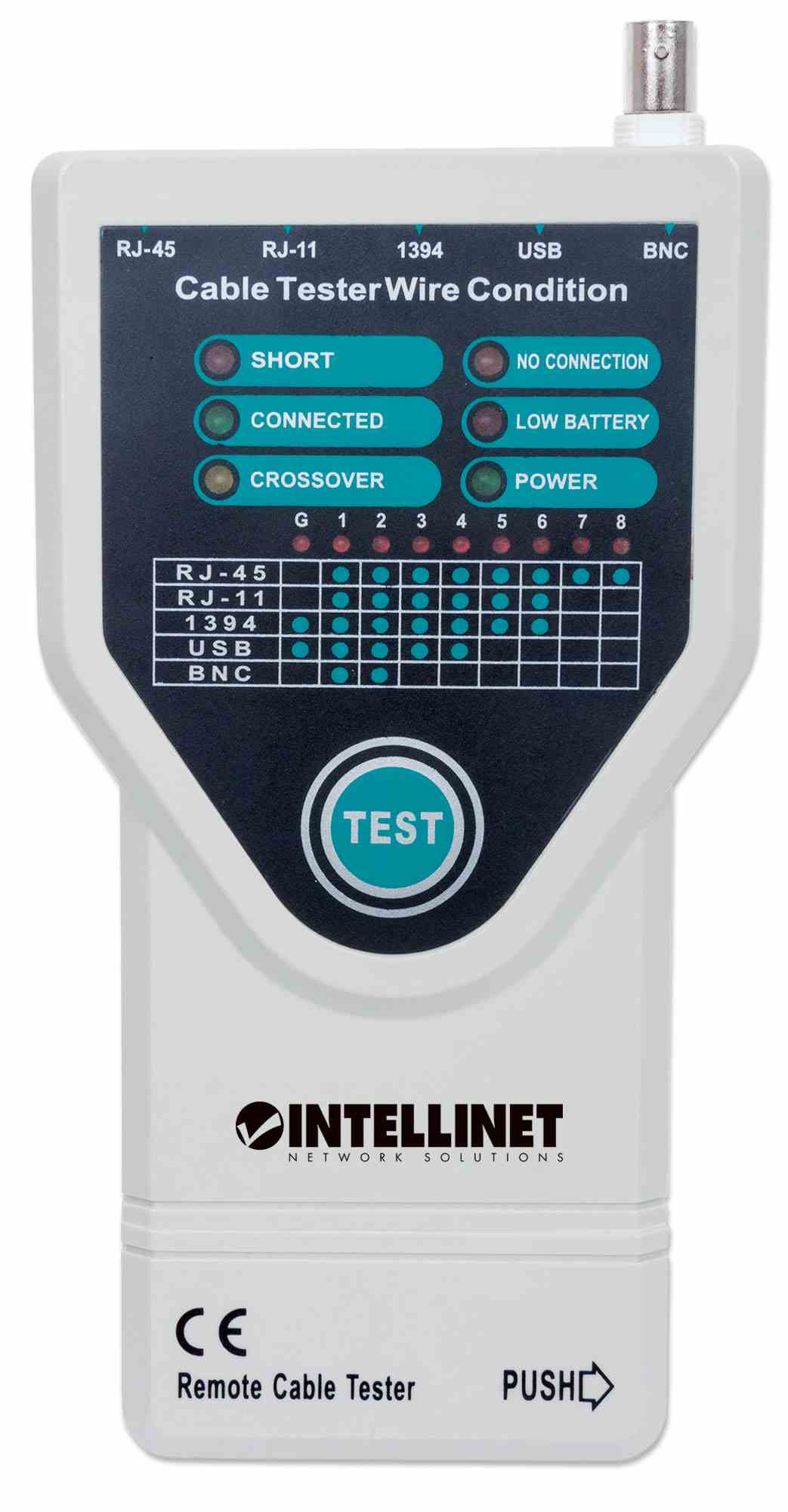 Intellinet Tester káblov, 5 v 1, RJ45, RJ11, USB, Firewire, BNC